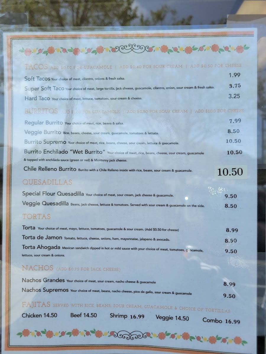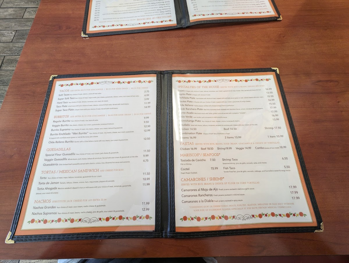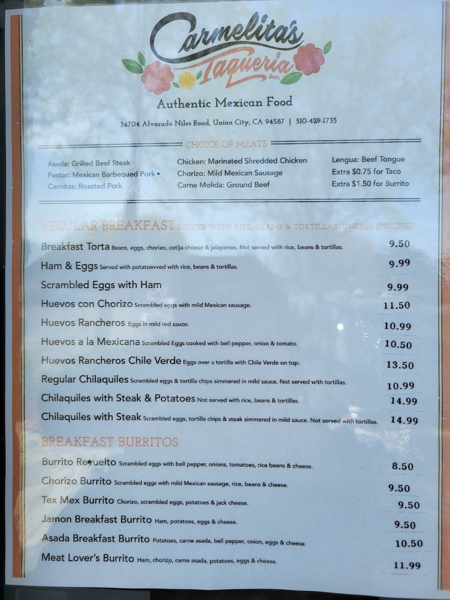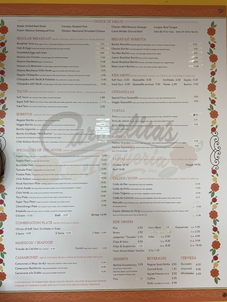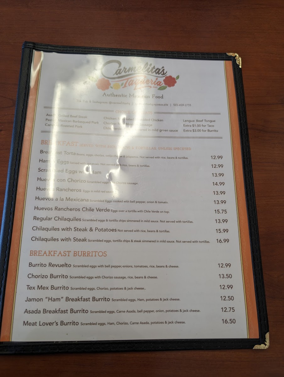 Carmelita's Taqueria, Inc. Menu